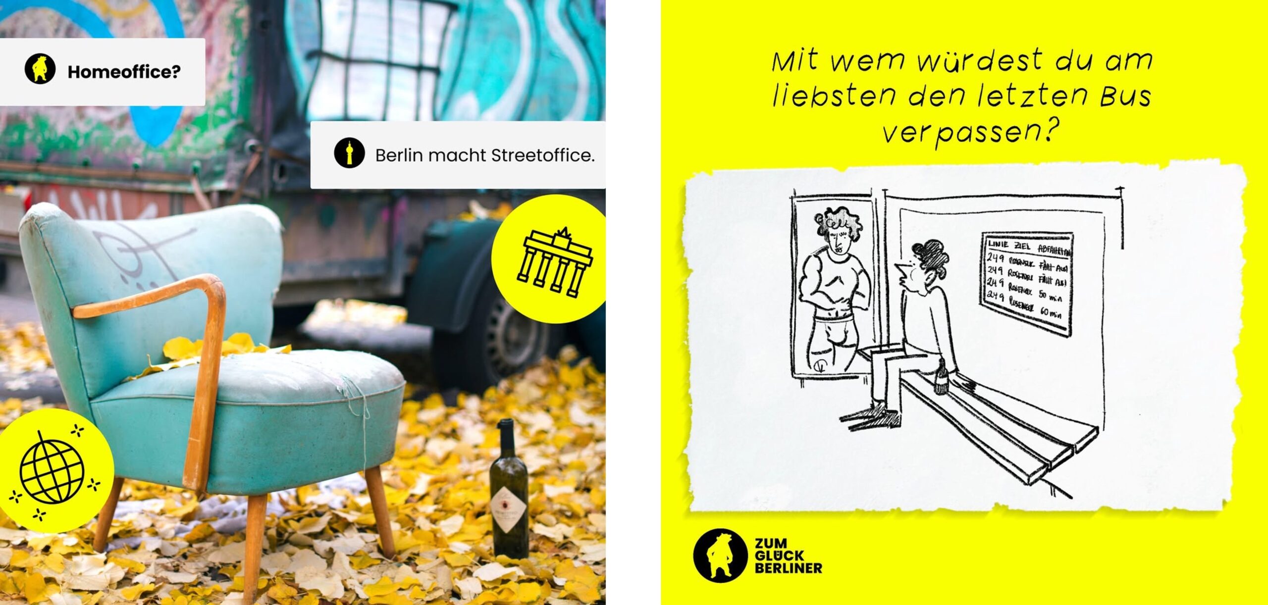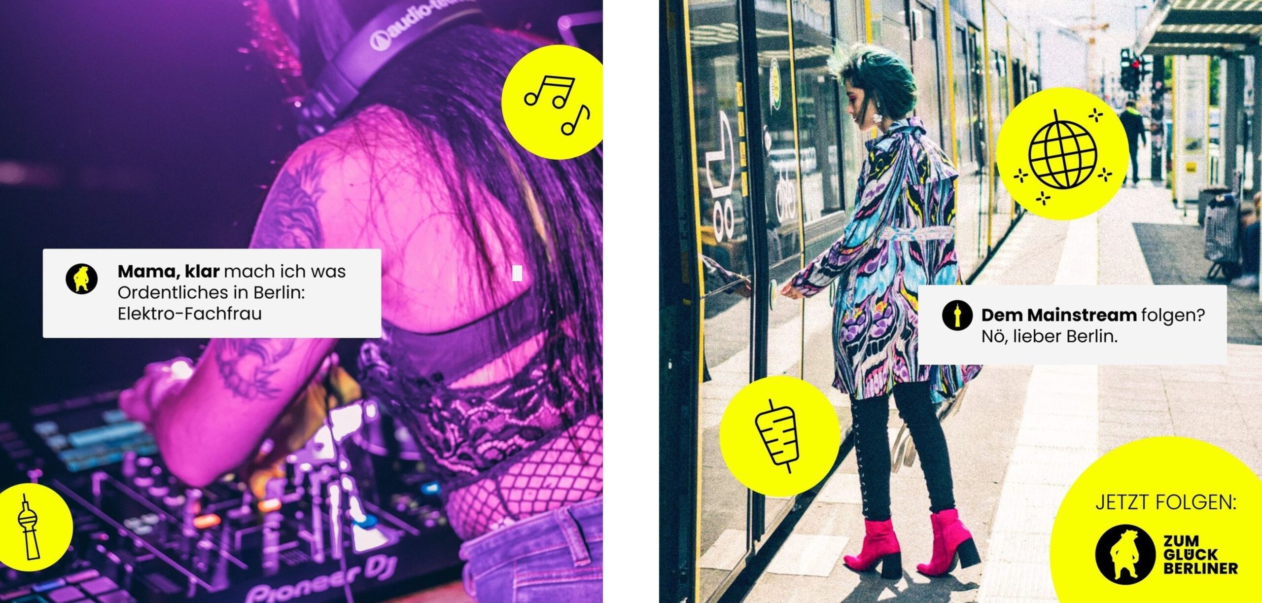 Täglich Content? Ein Glück gehen Berlin nie die Themen aus. Wir durften für die Plattform „Zum Glück Berliner“ organischen und werblichen Content erstellen und damit beitragen zu den über 50 Mio. Impressionen, über 2.5 Mio. Interaktionen und über 175.000 Followern.