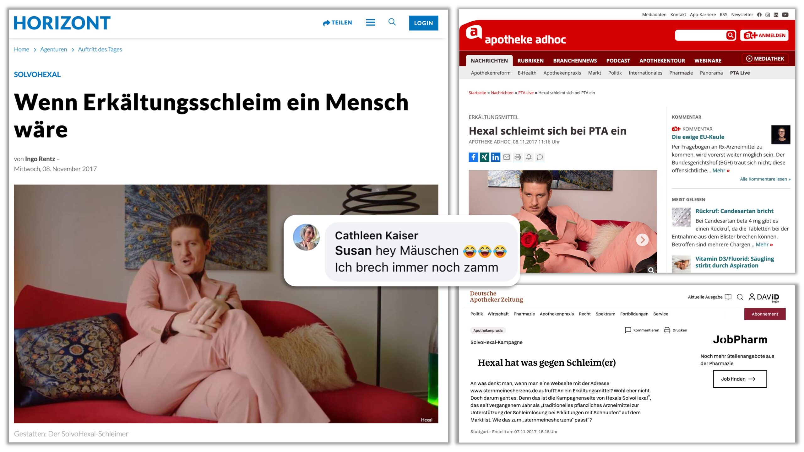 Für Solvo Hexal durfte ich mir als Praktikant der Texterschmiede / Hamburg School of Ideas eine Mailing-Kampagne inkl. Website und Videos ausdenken und texten, die Herzen und Apotheken Deutschlands eroberte. Und die Horizont Kreation des Tages war, sowie auf der Shortlist vom internationalen Kreativpreis Clio und dem Comprix, dem wichtigsten Healthcare-Award Deutschlands.