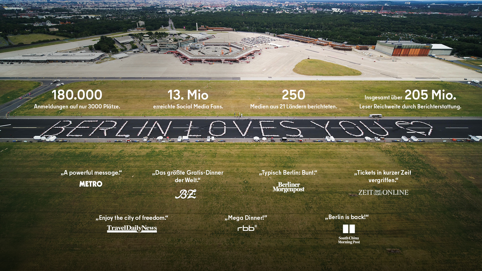 Mit dem Berlin Freedom Dinner und der wahrscheinlich längsten Headline aller Zeiten lassen wir die Welt nach Corona wissen: Berlin freut sich wieder auf Besucher:Innen.